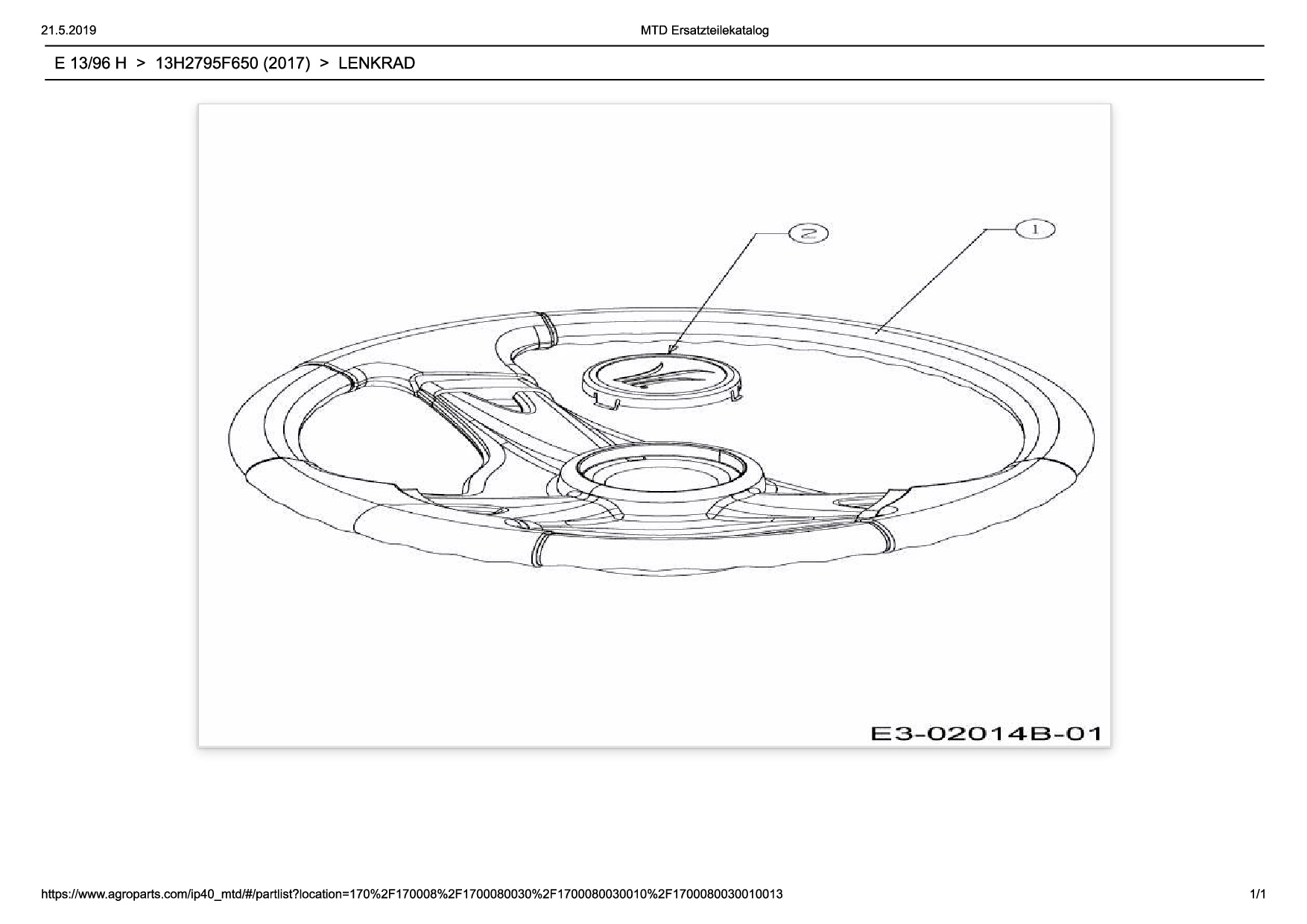 Download Ersatzteil-Zeichnung Wolf-Garten Expert E 13/96 H Zeichnung Lenkrad (PDF-Format)