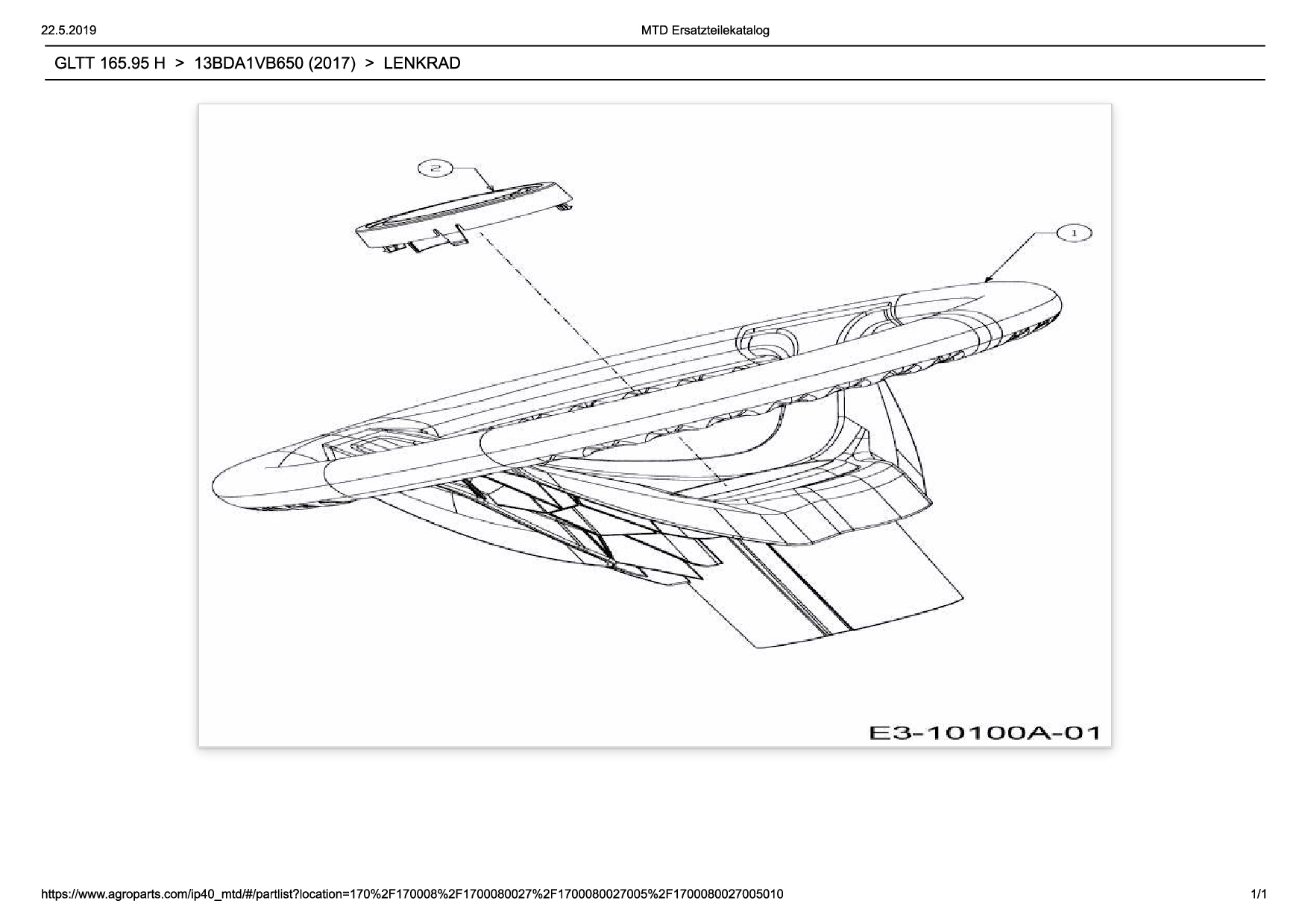 Ersatzteile für Rasentraktor Wolf-Garten Expert GLTT 165.95 H aus der Zeichnung Lenkrad:
