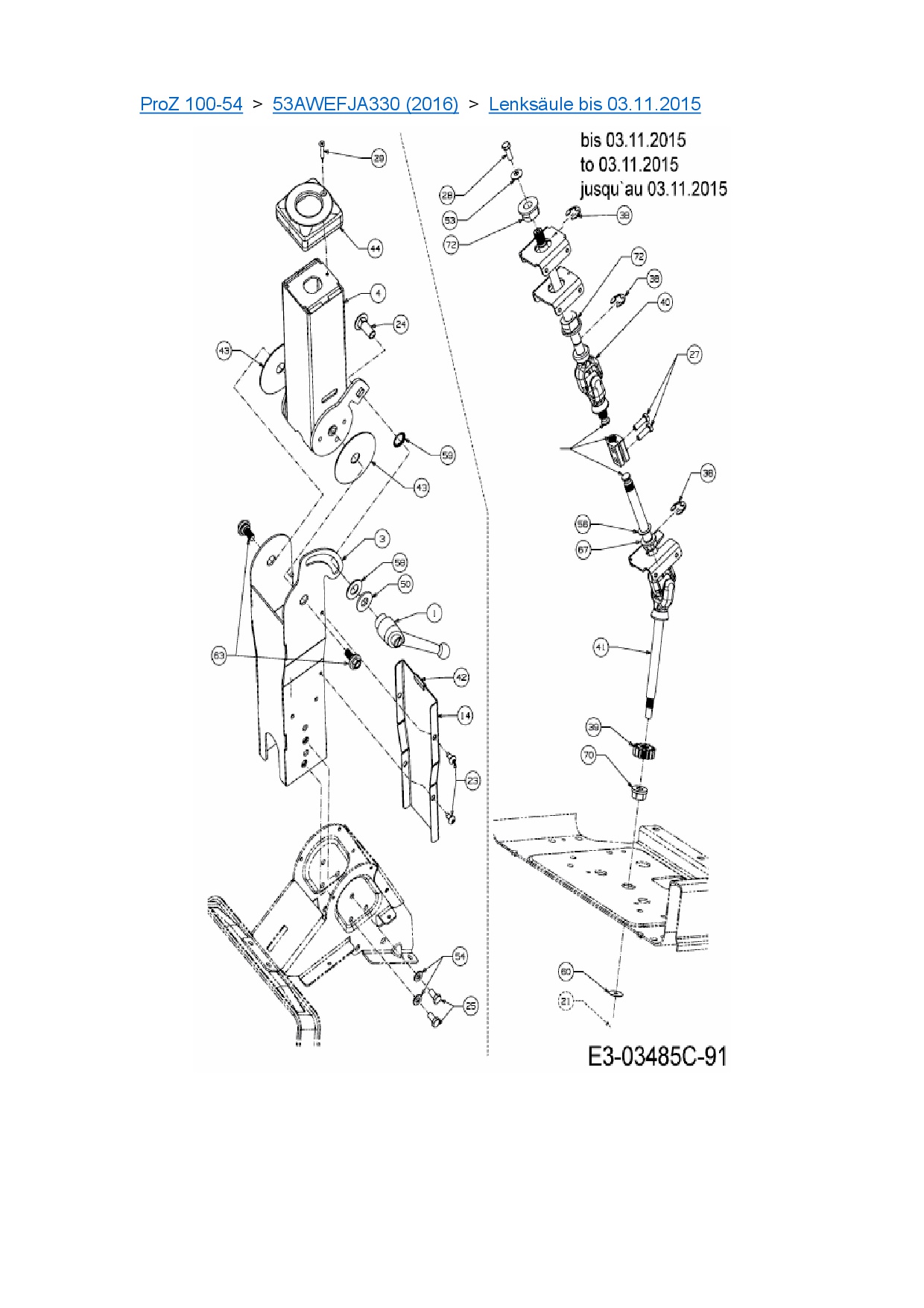 Ersatzteile für Zero Turn Cub Cadet ProZ 100-54 aus der Zeichnung Lenksäule bis 03.11.2015: