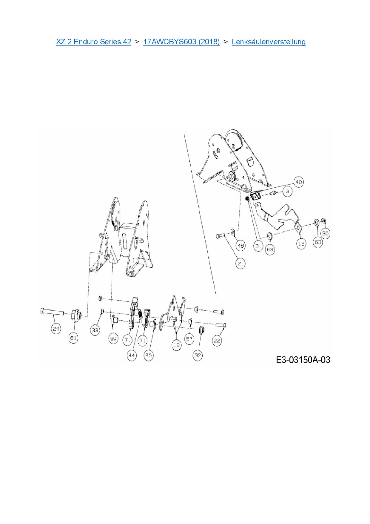 Ersatzteile für Zero Turn Cub Cadet XZ 2 Enduro Series 42 aus der Zeichnung Lenksäulenverstellung: