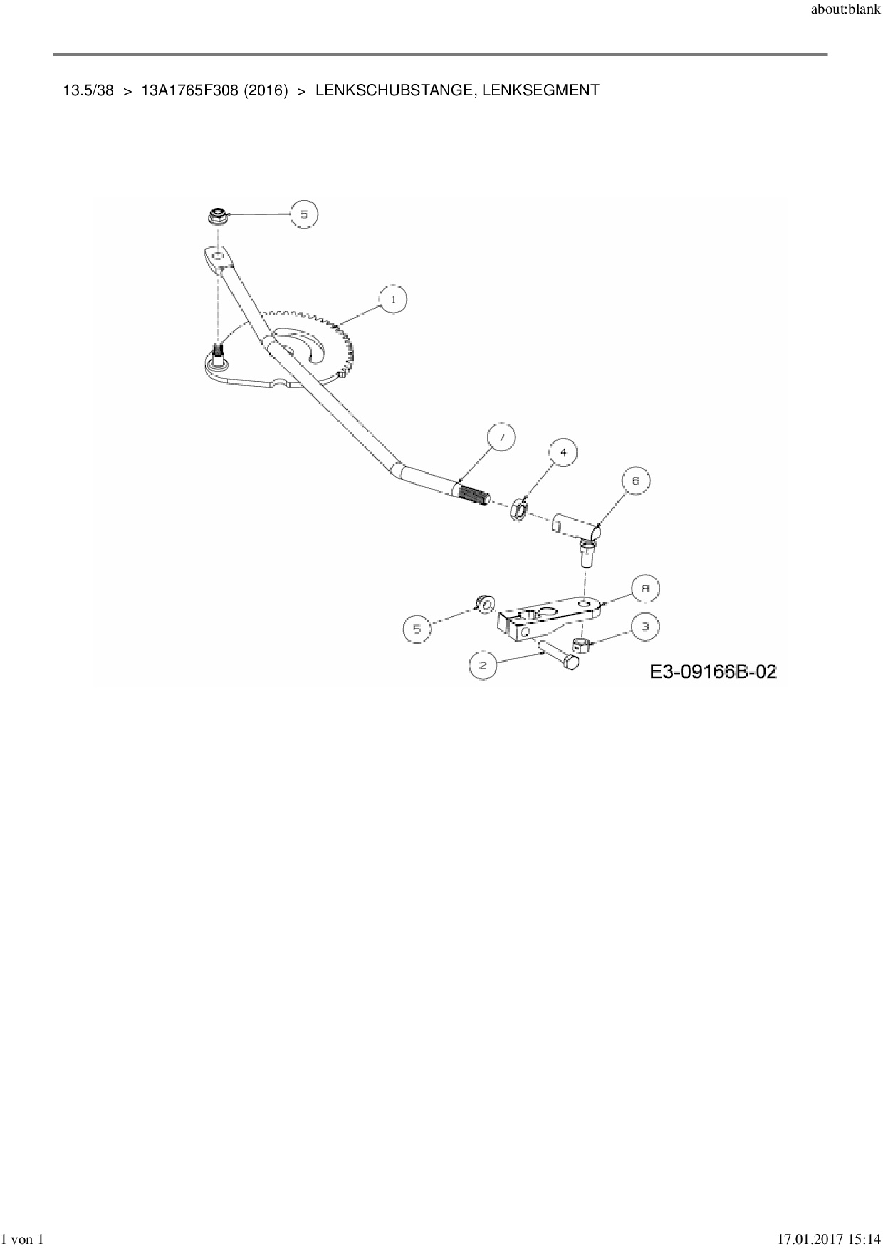 Ersatzteile für Rasentraktor MTD 13.5/38 aus der Zeichnung Lenkschubstange, Lenksegment: