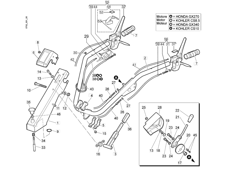 Hier finden Sie alle Ersatzteile für Oleo-Mac Schlegelmulcher WB 65 HR 11 aus der Zeichnung für Lenkstange und Bedienung: