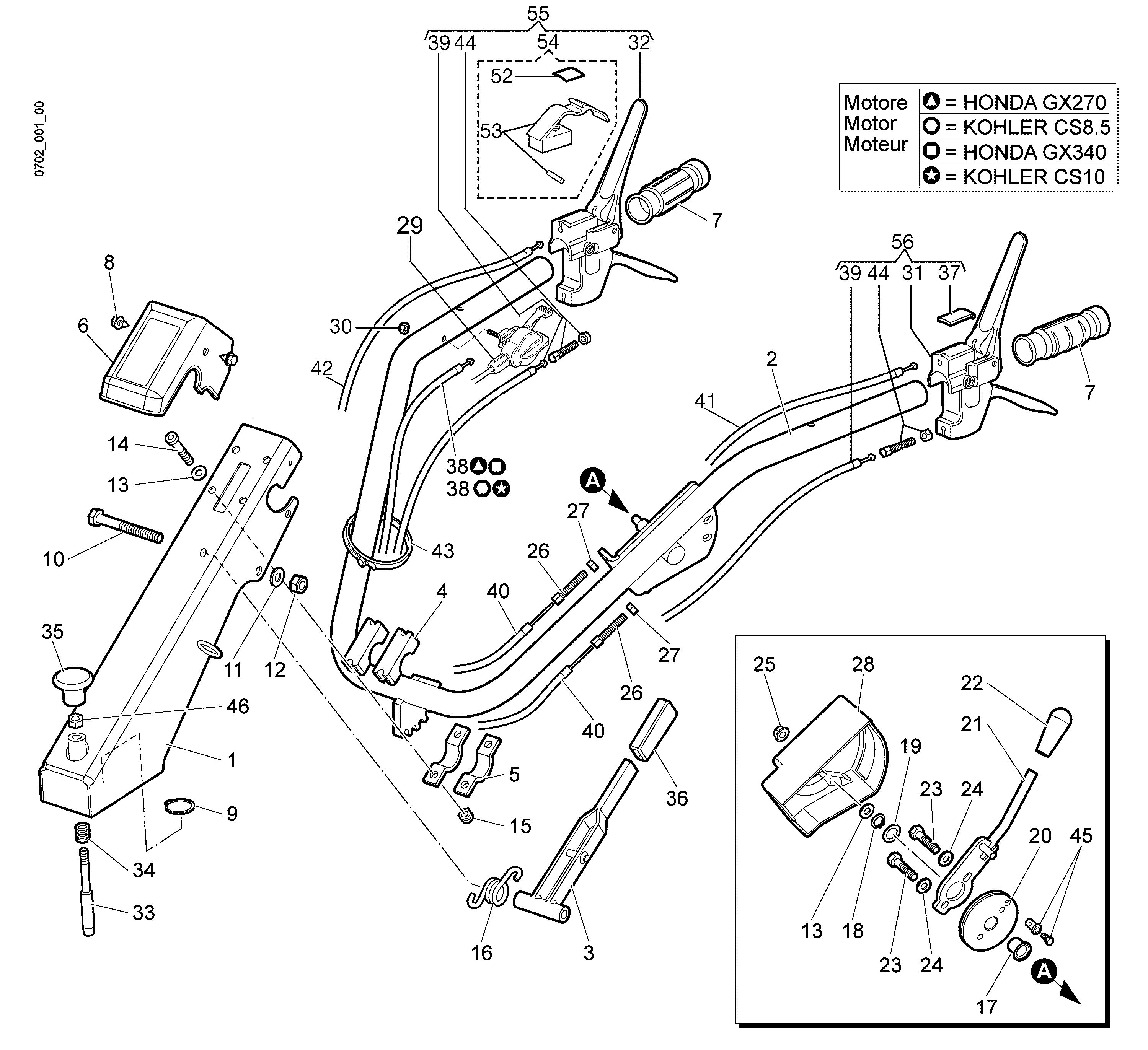Hier finden Sie alle Ersatzteile für Bertolini Schlegelmulcher BTS 65 (Fino/Until 2009) aus der Zeichnung für Lenkstange und Bedienung: