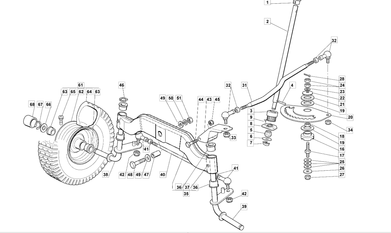 Hier finden Sie alle Ersatzteile für Oleo-Mac Rasentraktor OM 102C/18,5H Cat.2009 aus der Zeichnung für Lenkstock: