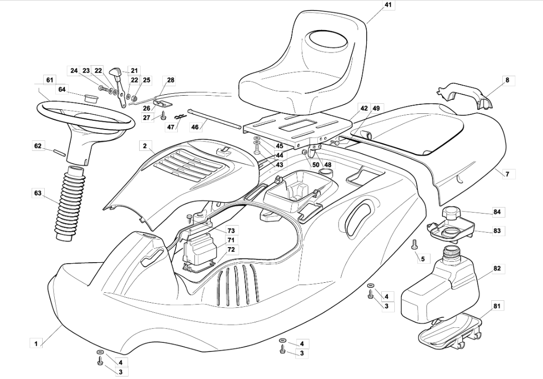 Zeichnung Oleo-Mac Rasentraktor OM 63C/6,5M Cat. 2004: