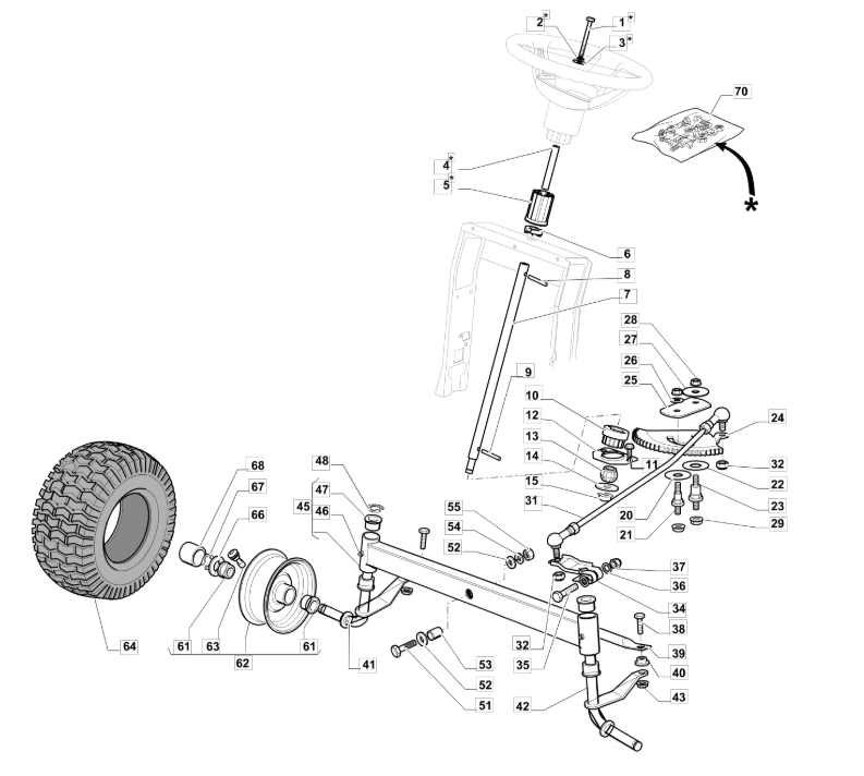 Hier finden Sie alle Ersatzteile für Oleo-Mac Rasentraktor OM 98L/14,5 K H Cat. 2014 aus der Zeichnung für Lenkstock: