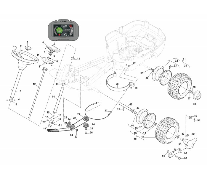 Beachten Sie bitte, dass die Gerätebezeichnung Stiga Frontaufsitzmäher E-Park 220, das Baujahr ab 2019 und die Geräte Nr. 2F5828001/ST1 lauten muss, denn nur so kann sichergestellt werden, dass das Ersatzteil passt. Nur die hier aufgeführten Ersatzteile sind für dieses Gerät verfügbar. Alle anderen Ersatzteile sind nicht mehr lieferbar. Ersatzteile von Stiga Frontaufsitzmäher E-PARK 220 (Geräte ID 2F5828001/ST1) Baujahr ab Bj 2019: