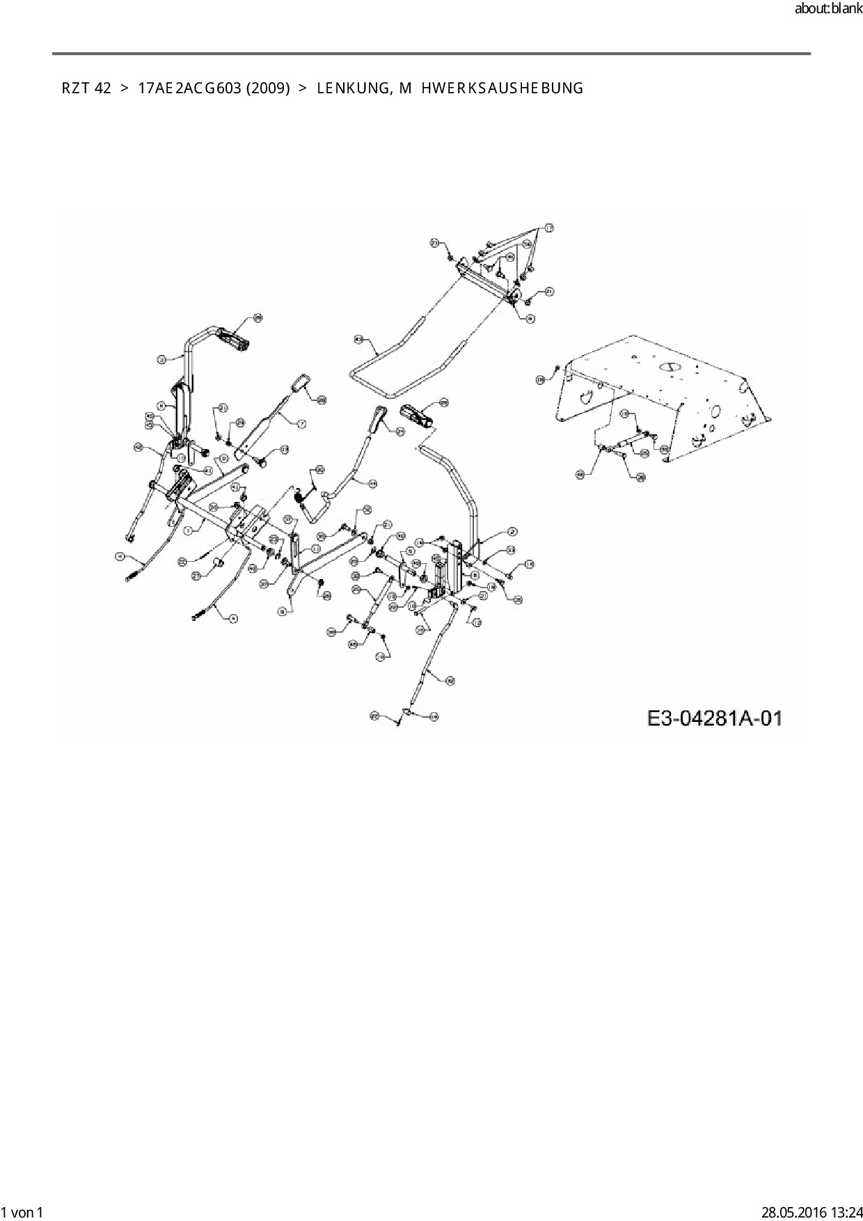 Ersatzteile für Zero Turn Cub Cadet RZT 42 aus der Zeichnung Lenkung, Mähwerksaushebung: