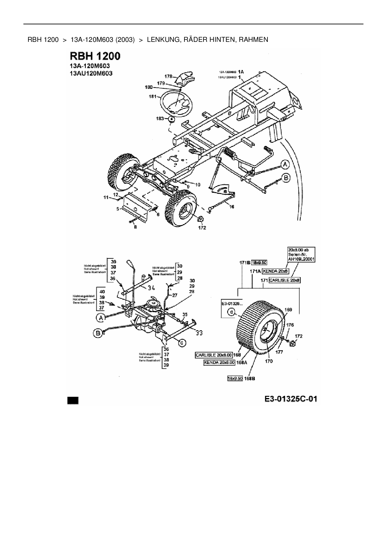 Ersatzteile für Rasentraktor Cub Cadet RBH 1200 aus der Zeichnung Lenkung, Räder hinten, Rahmen:
