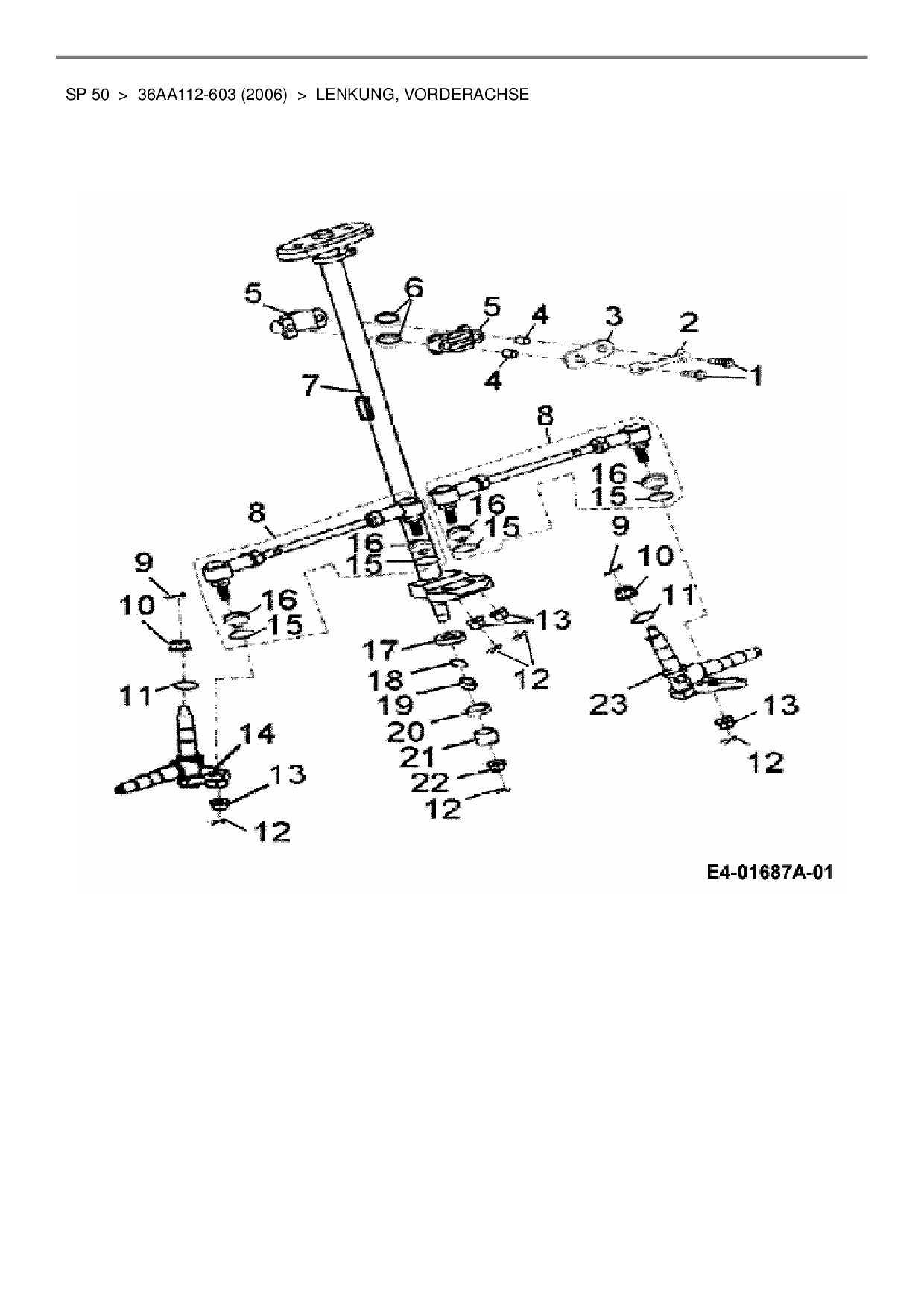 Ersatzteile für Quad Cub Cadet SP 50 aus der Zeichnung Lenkung, Vorderachse: