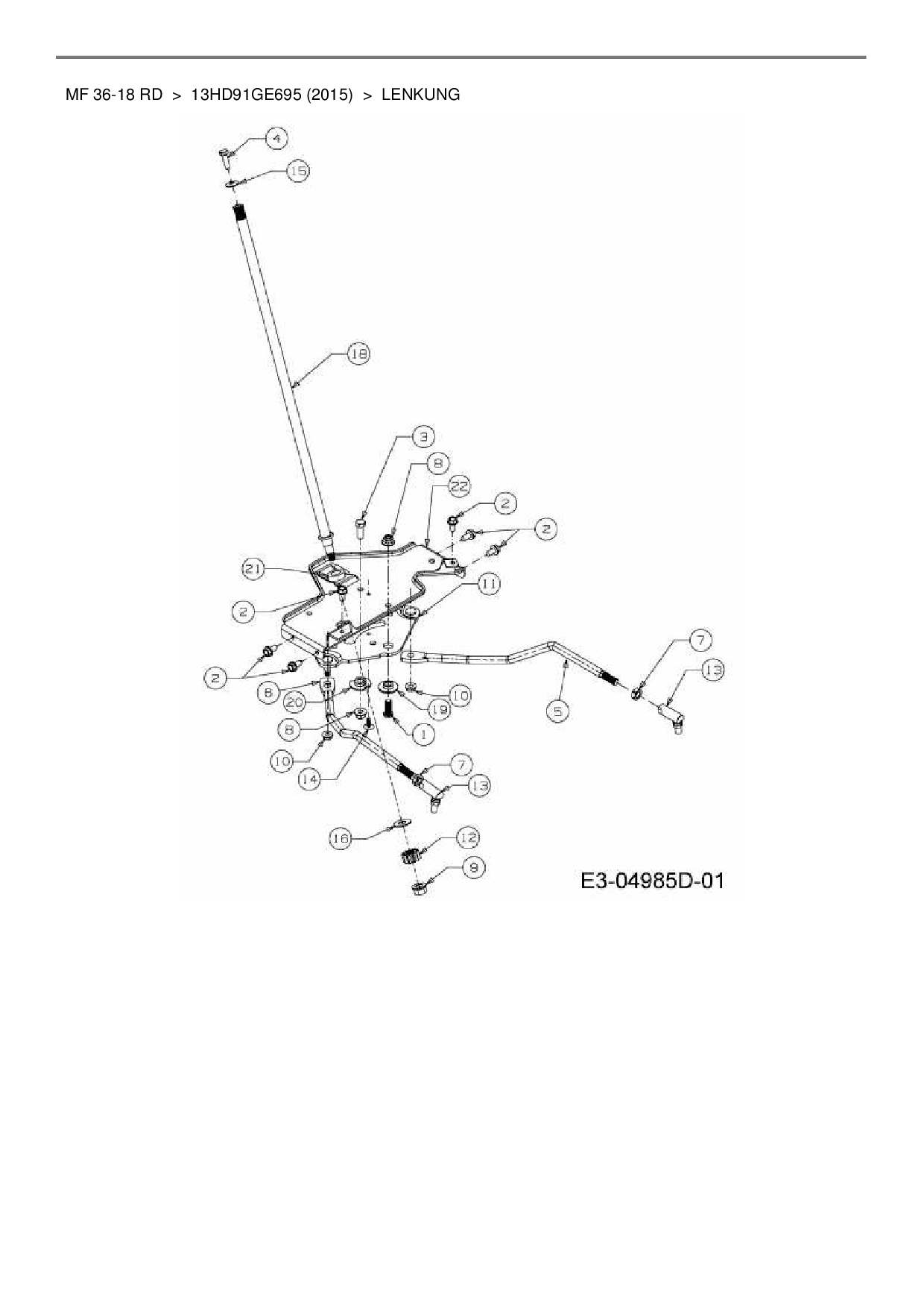 Zeichnung für Massey Ferguson Rasentraktor MF 36-18 RD mit der Geräte-Artikelnr. 13HD91GE695 ab Baujahr 2015: