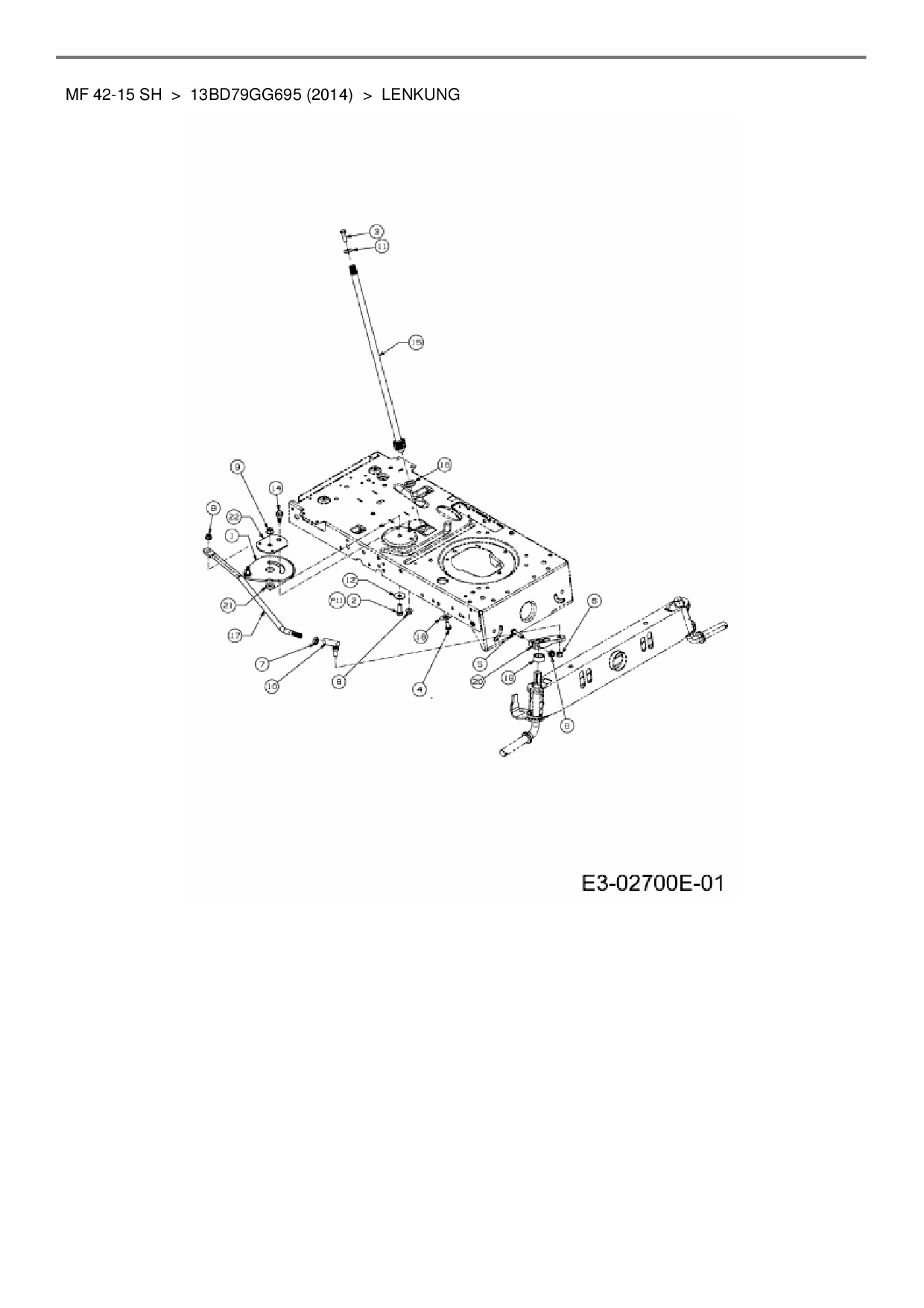 Zeichnung für Massey Ferguson Rasentraktor MF 42-15 SH mit der Geräte-Artikelnr. 13BD79GG695 ab Baujahr 2014: