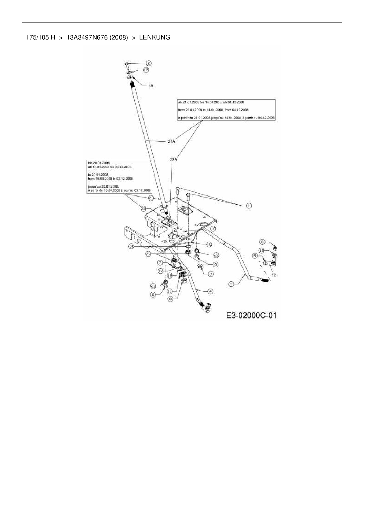 Ersatzteile für Rasentraktor MTD 175/105 H aus der Zeichnung Lenkung: