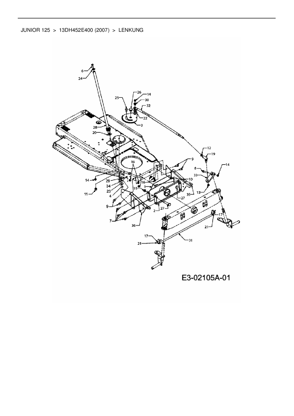 Zeichnung für MTD Rasentraktor Junior 125 mit der Geräte-Artikelnr. 13DH452E400 ab Baujahr 2007: