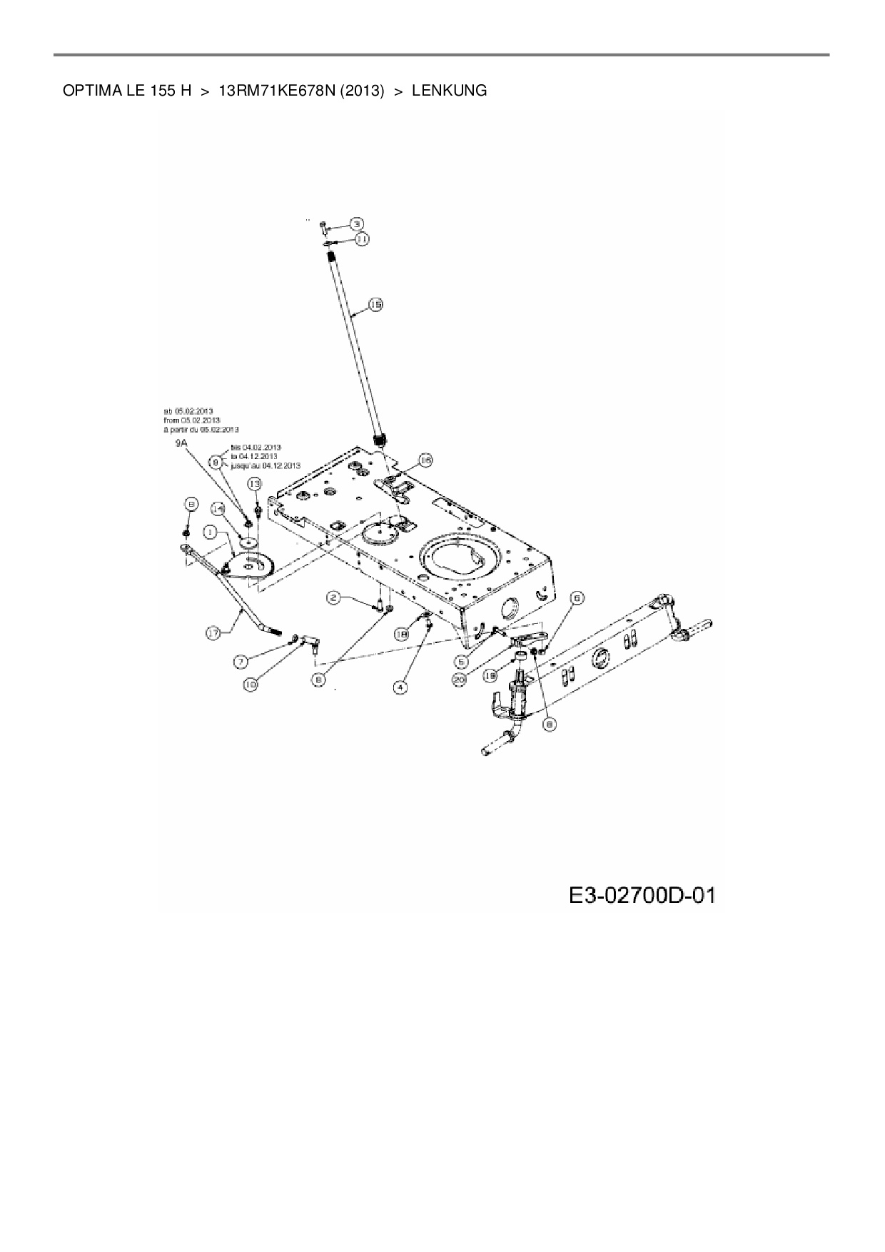 Ersatzteile für Rasentraktor MTD Optima LE 155 H aus der Zeichnung Lenkung: