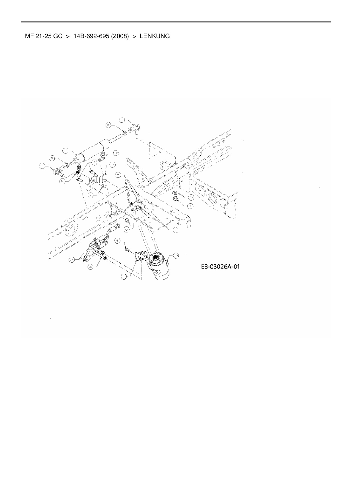 Zeichnung für Massey Ferguson Gartentraktor MF 21-25 GC mit der Geräte-Artikelnr. 14B-692-695 ab Baujahr 2008: