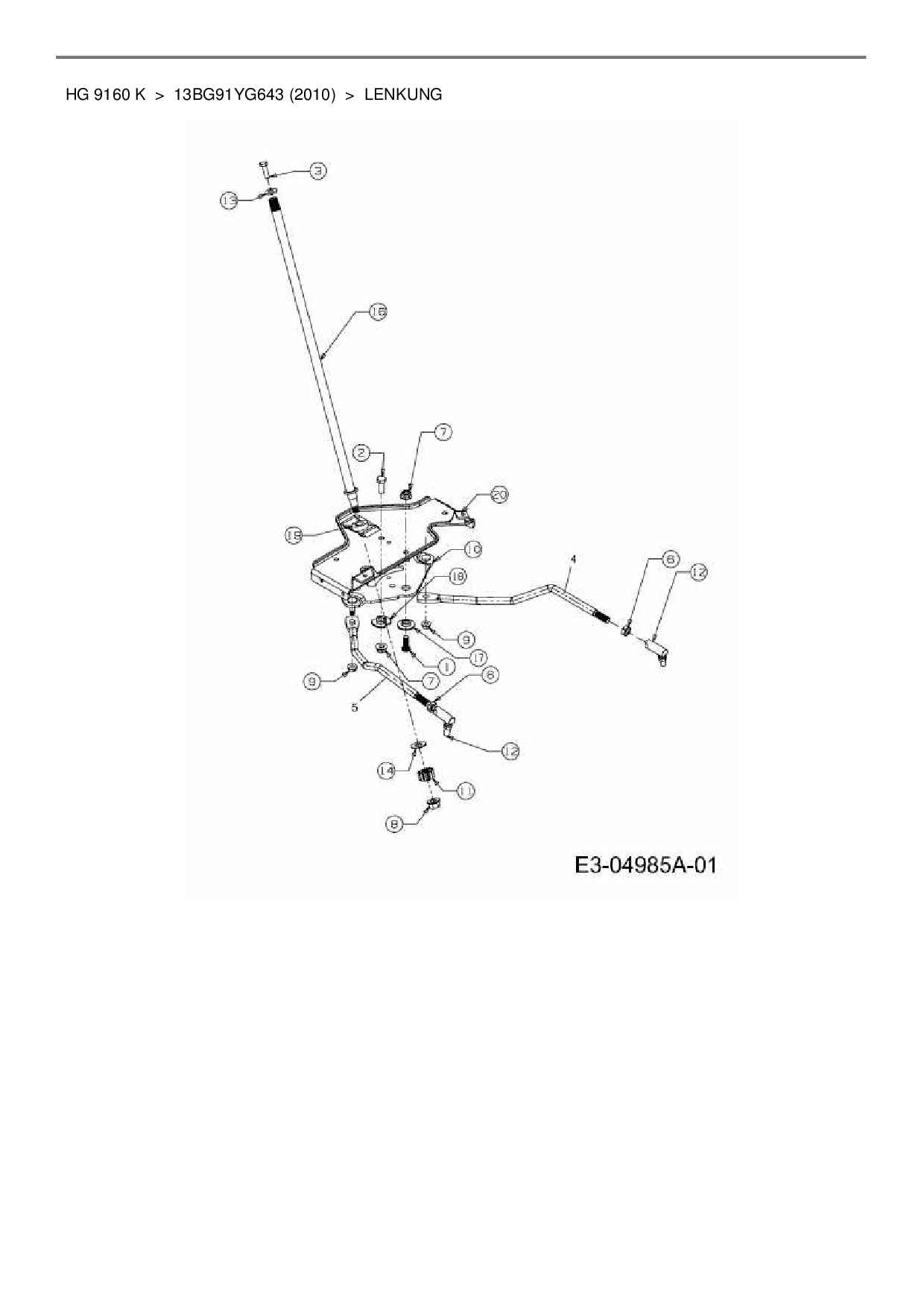 Ersatzteile für Rasentraktor Yard-Man HG 9160 K aus der Zeichnung Lenkung: