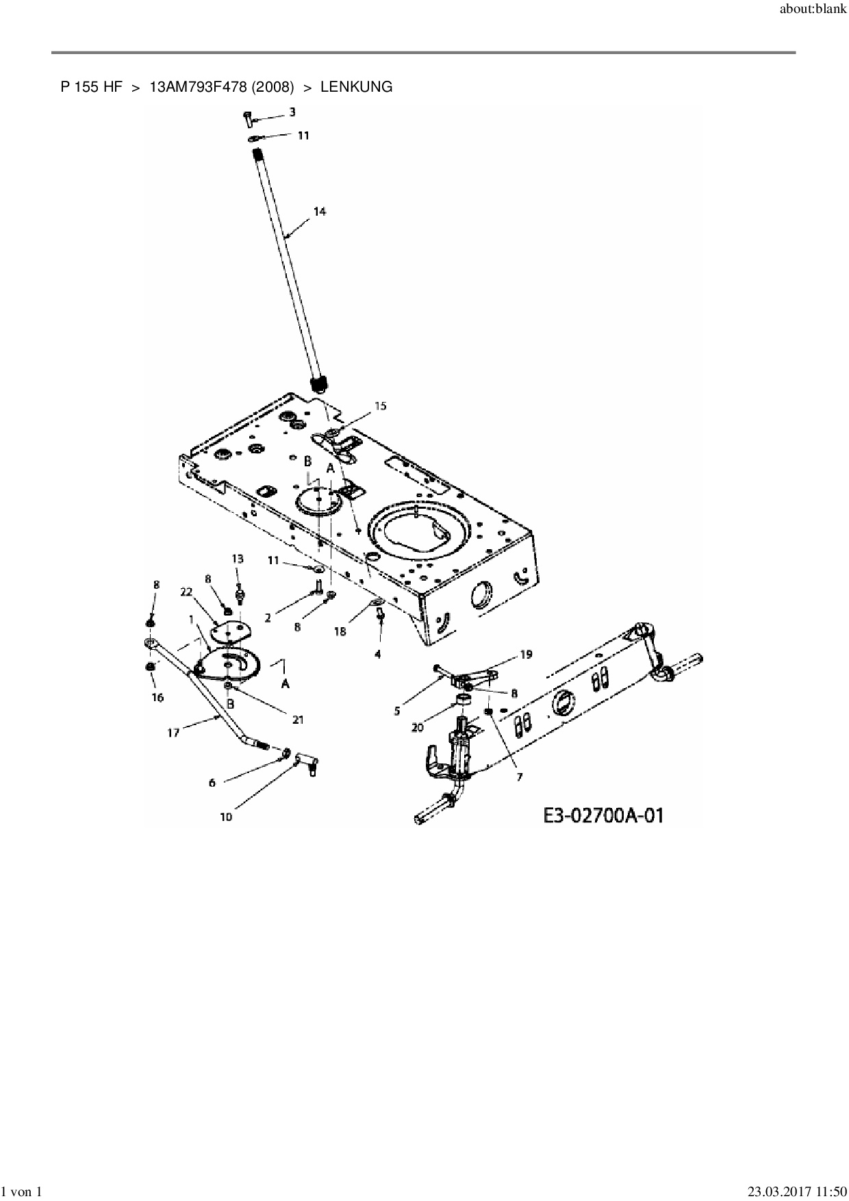 Ersatzteile für Rasentraktor MTD P 155 HF aus der Zeichnung Lenkung: