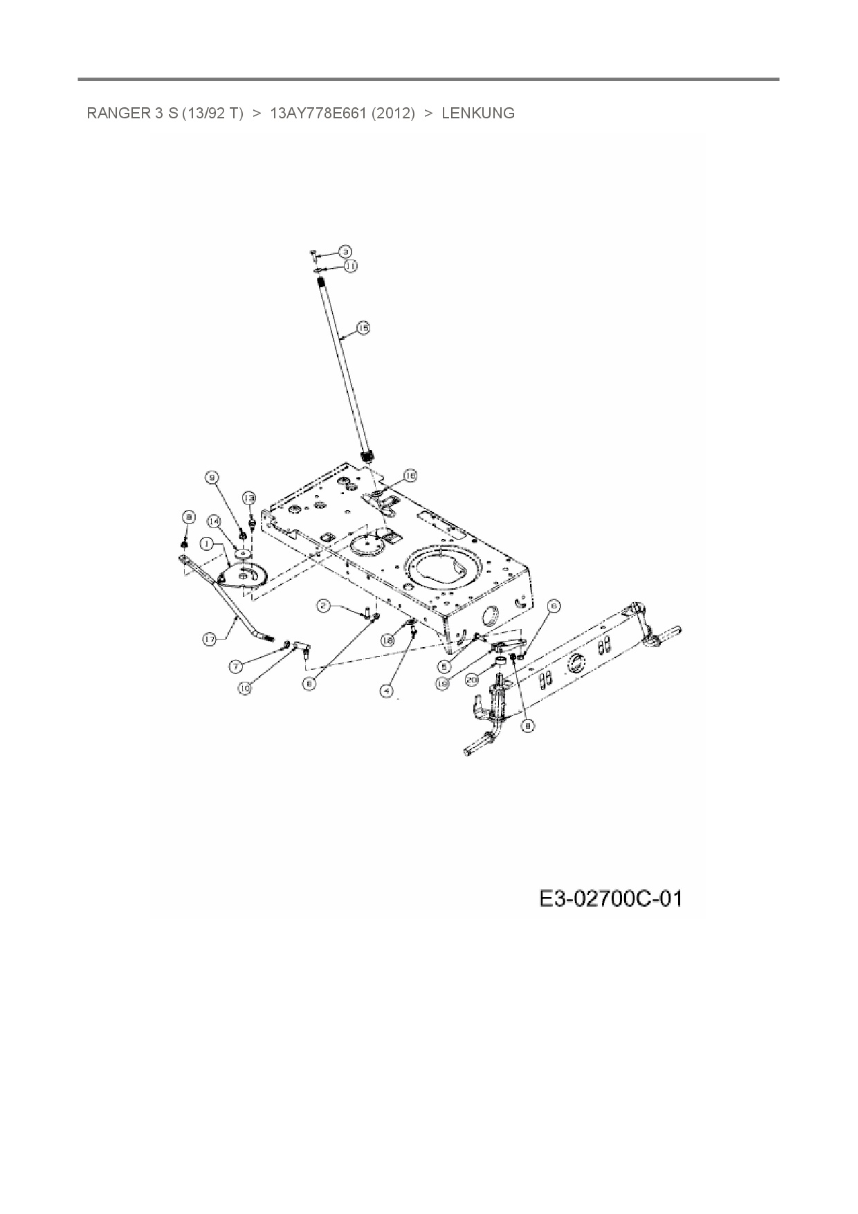 Ersatzteile für Rasentraktor Ranger Ranger 3 S (13/92 T) aus der Zeichnung Lenkung: