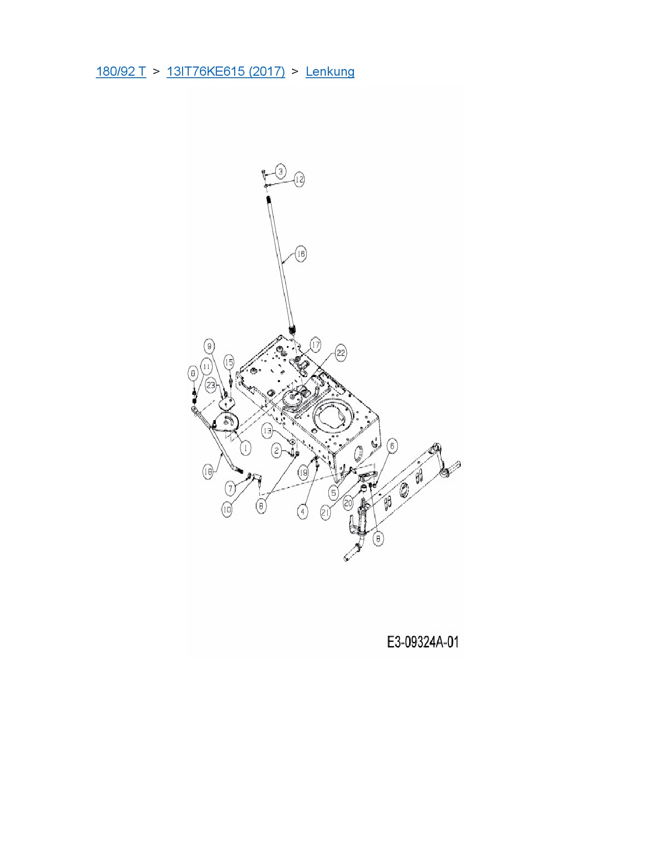 Ersatzteile für Rasentraktor MTD 180/92 T aus der Zeichnung Lenkung: