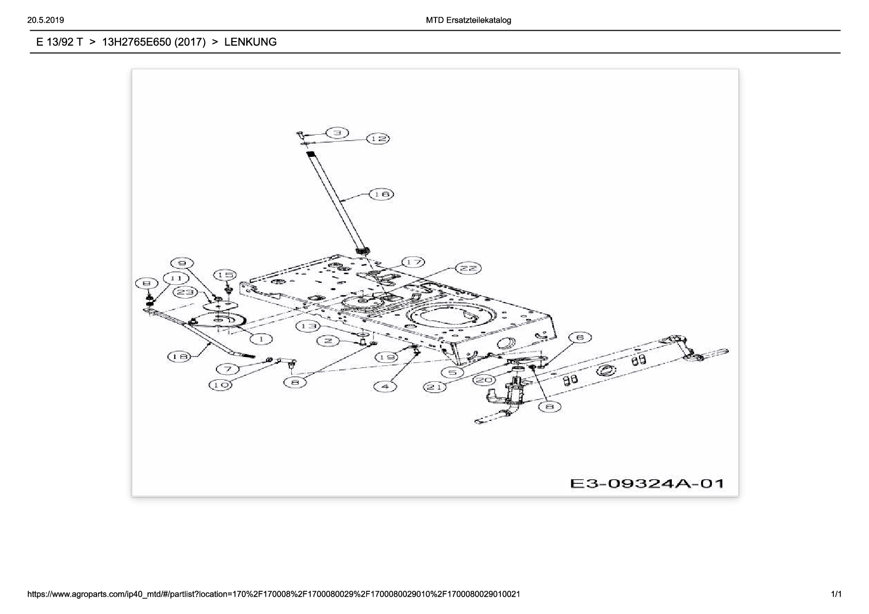 Ersatzteile für Rasentraktor Wolf-Garten Expert E 13/92 T aus der Zeichnung Lenkung: