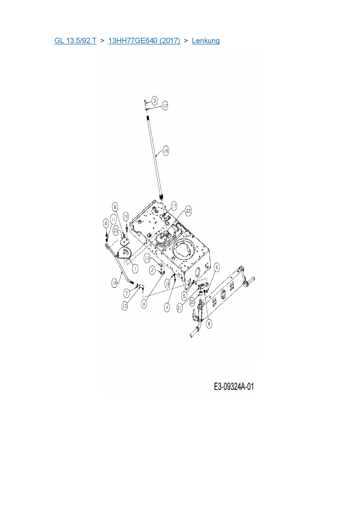 Ersatzteile für Rasentraktor Gartenland GL 13.5/92 T aus der Zeichnung Lenkung: