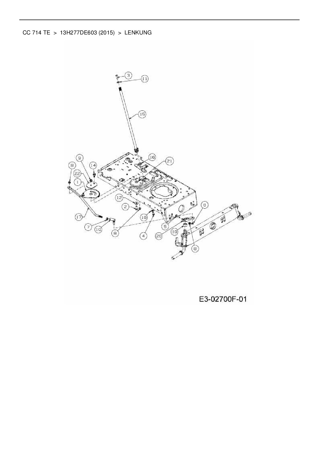 Zeichnung für Cub Cadet Rasentraktor CC 714 TE mit der Geräte-Artikelnr. 13H277DE603 ab Baujahr 2015: