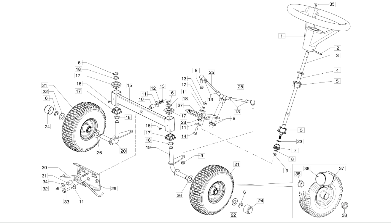Hier finden Sie alle Ersatzteile für EFCO Rasentraktor ZEPHYR 72/13 H (4in1) e EURO 5 aus der Zeichnung Lenkung: