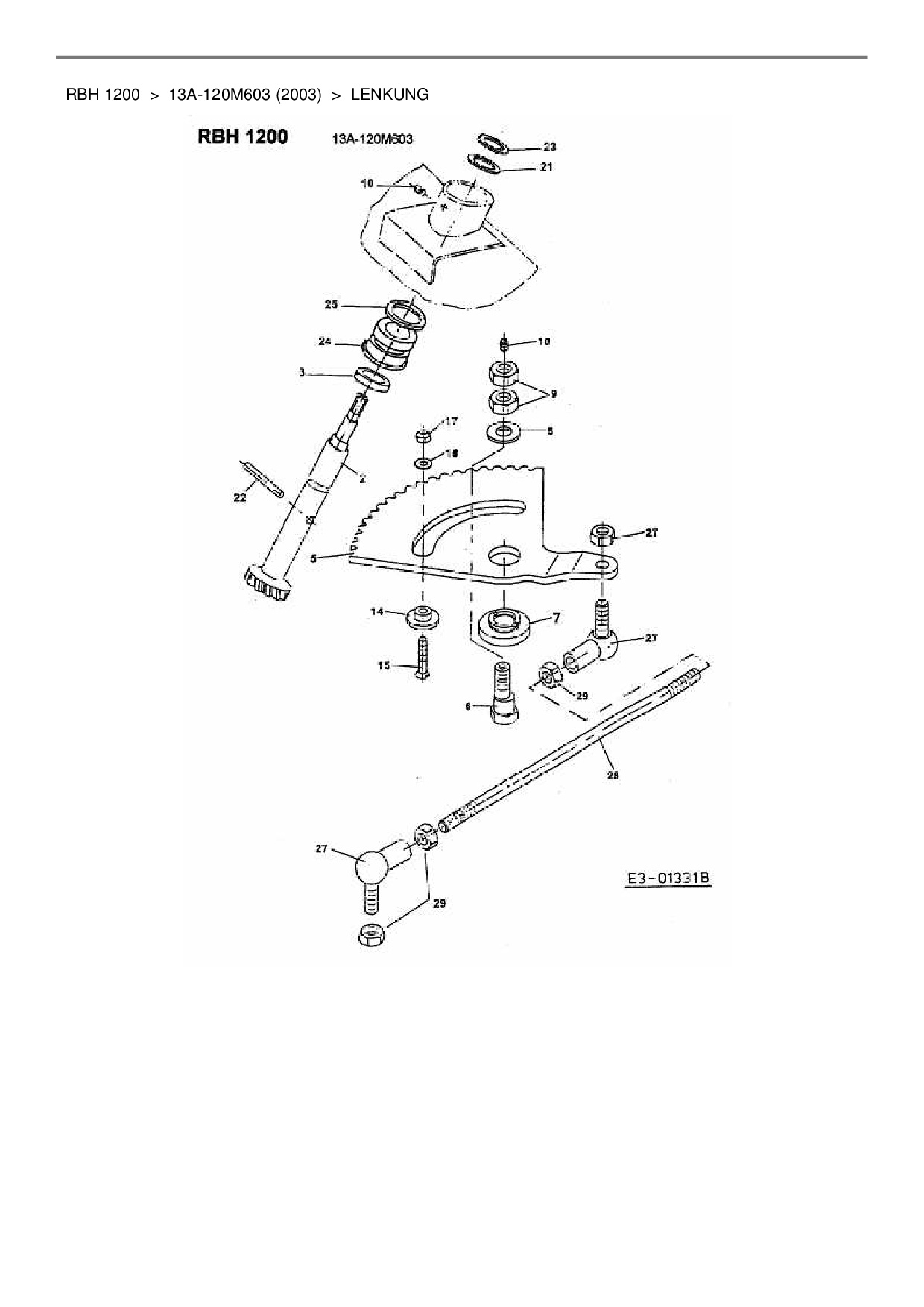 Ersatzteile für Rasentraktor Cub Cadet RBH 1200 aus der Zeichnung Lenkung: