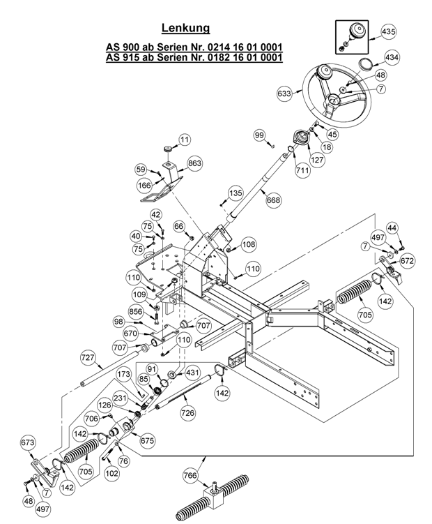 Hier finden Sie alle Ersatzteile von AS-Motor Aufsitzmäher AS 900 Enduro ab FNr. 021418050015 aus dem Zeichnungsblatt Lenkung: