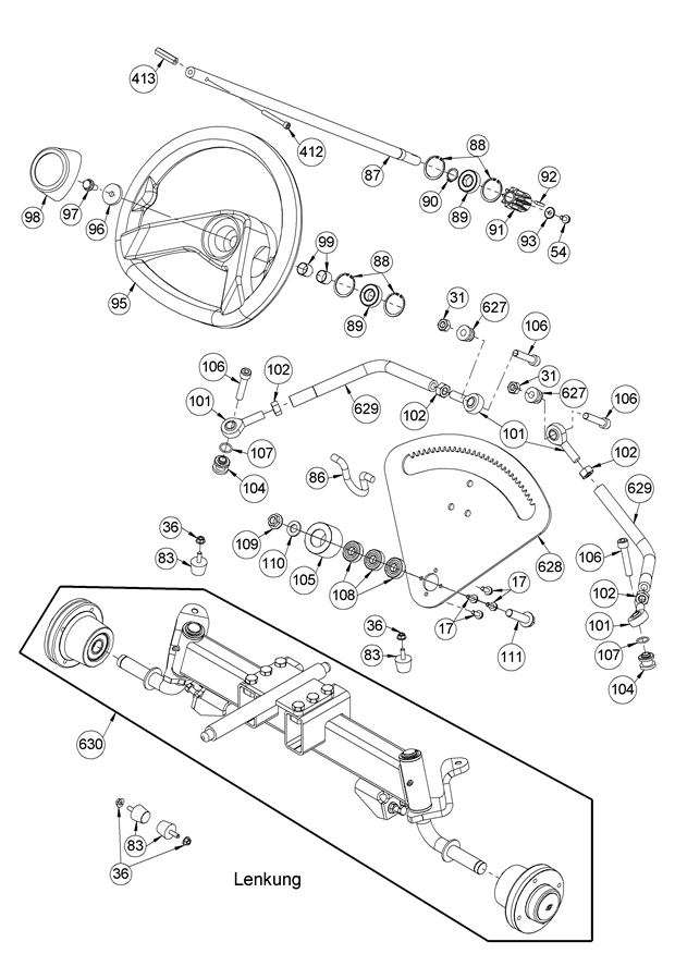 Hier finden Sie alle Ersatzteile von AS-Motor Aufsitzmäher AS 920 Sherpa 2WD B&S ab FNr. 027621010001 aus dem Zeichnungsblatt Lenkung: