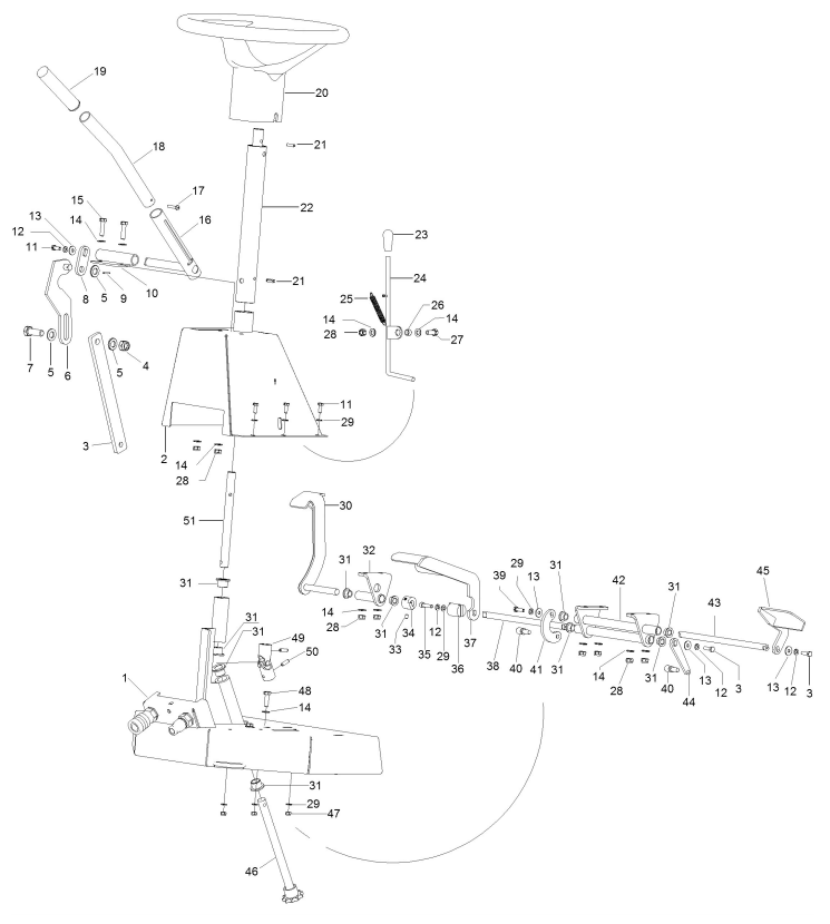 Zeichnung von Erco Multitrak MT-1100 Lenkungsäule, Pedale: