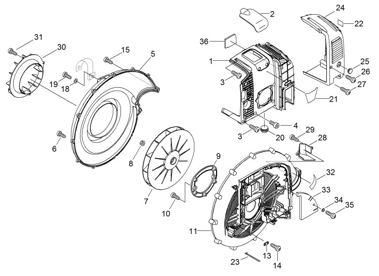 Zeichnung von ECHO Laubbläser, tragbar PB-760LN PB-760LN ab S.-Nr.: 37000001 Lüfter, -gehäsue, Abdeckungen: