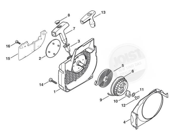 Hier finden Sie alle Ersatzteile von Stihl Benzin-Motorsägen MS 210 der Zeichnungsgruppe Lüftergehäuse mit Anwerfvorrichtung: