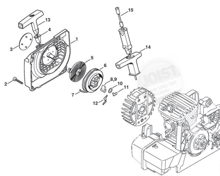 Hier finden Sie alle Ersatzteile von Stihl Benzin-Motorsägen 029 der Zeichnungsgruppe Lüftergehäuse mit Anwerfvorrichtung: