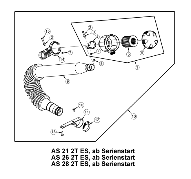 Hier finden Sie alle Ersatzteile von AS-Motor Allmäher AS 28 2T ES ab FNr. 027916070001 aus dem Zeichnungsblatt Luftansaugschlauch vollst.: