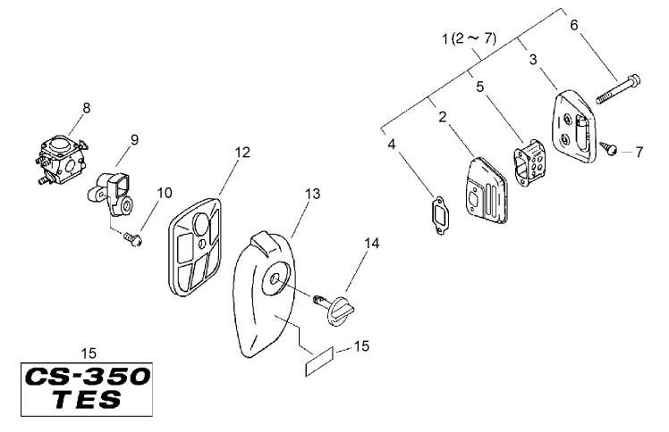 Zeichnung von ECHO Motorsägen CS-350TES CS-350TES ab S.-Nr.: 36066551 Luftfilter, Auspuff: