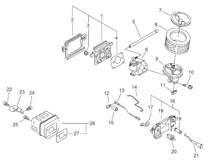 Zeichnung von ECHO Motorsägen CS-510 CS-510 ab S.-Nr.: 36021091 Luftfilter, Auspuff: