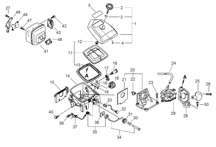 Zeichnung von ECHO Motorsägen CS-8002 CS-8002 ab S.-Nr.: 36001406 Luftfilter, Auspuff: