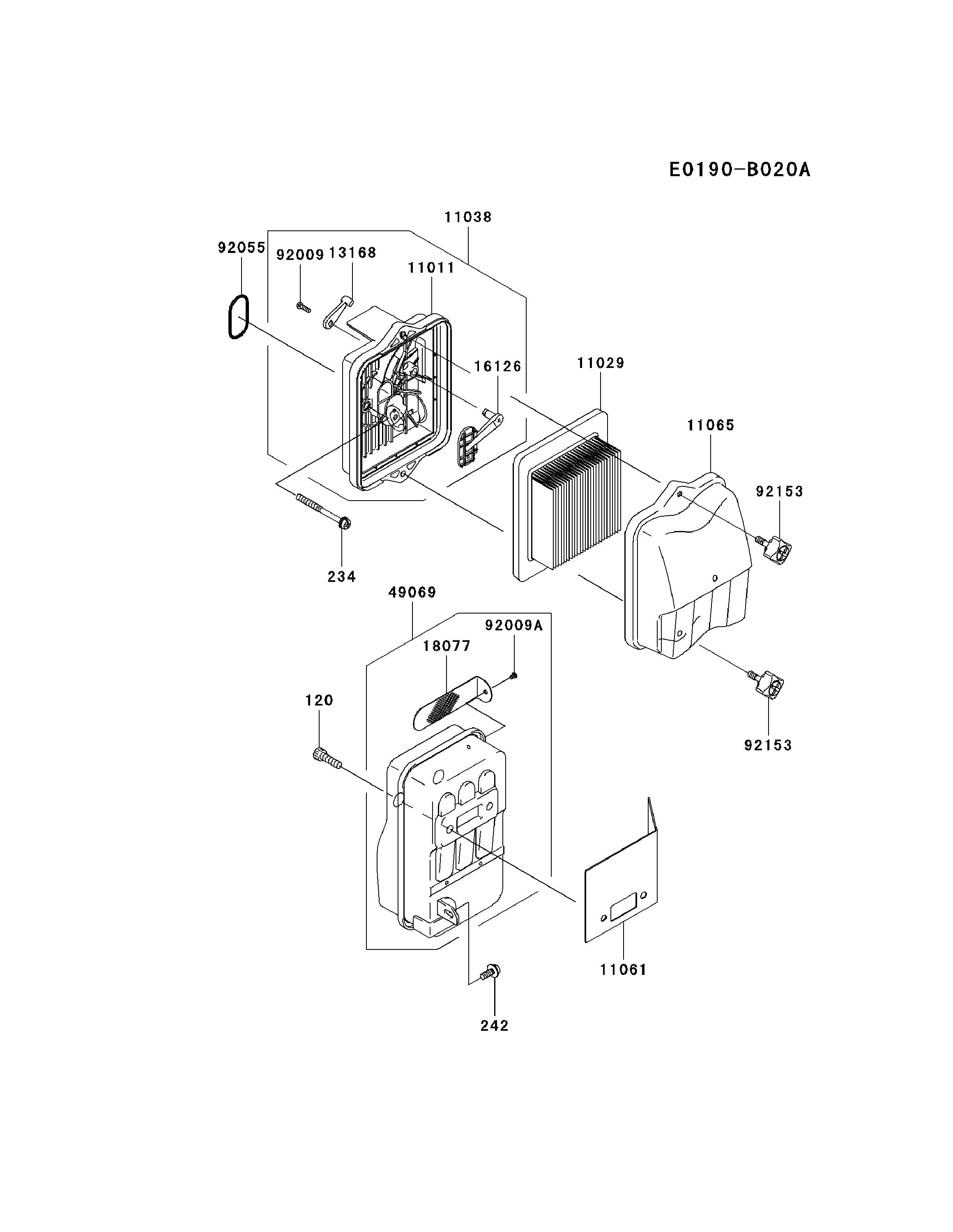 Hier finden Sie alle Ersatzteile von Kawasaki Laubbläser HG750A-AS03 (KRB750AC) aus der Zeichnung Luftfilter/Auspuff: