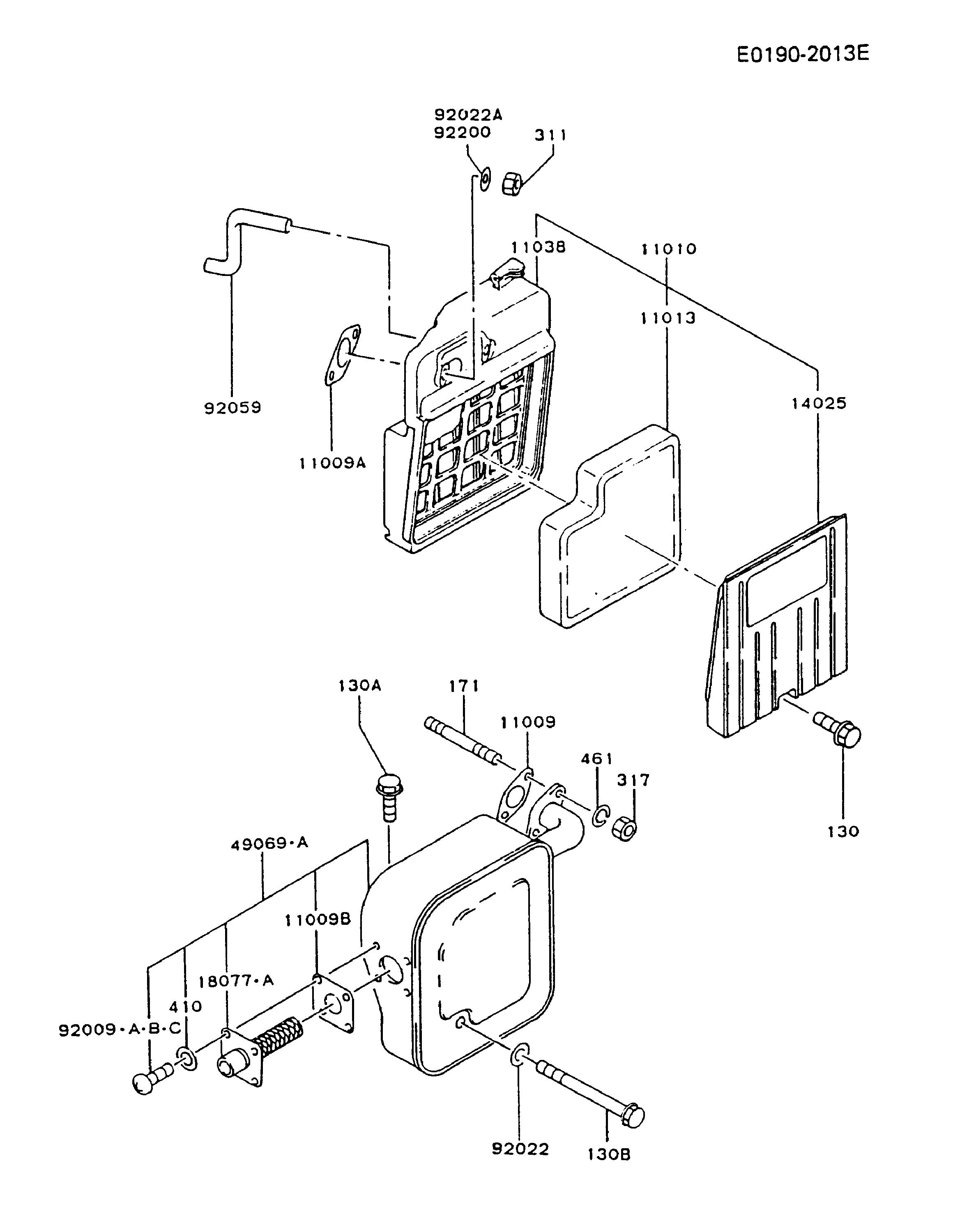 Hier finden Sie alle Ersatzteile von Kawasaki Generatoren GAT80A-CS58 (GA1800A) aus der Zeichnung Luftfilter / Auspuff: