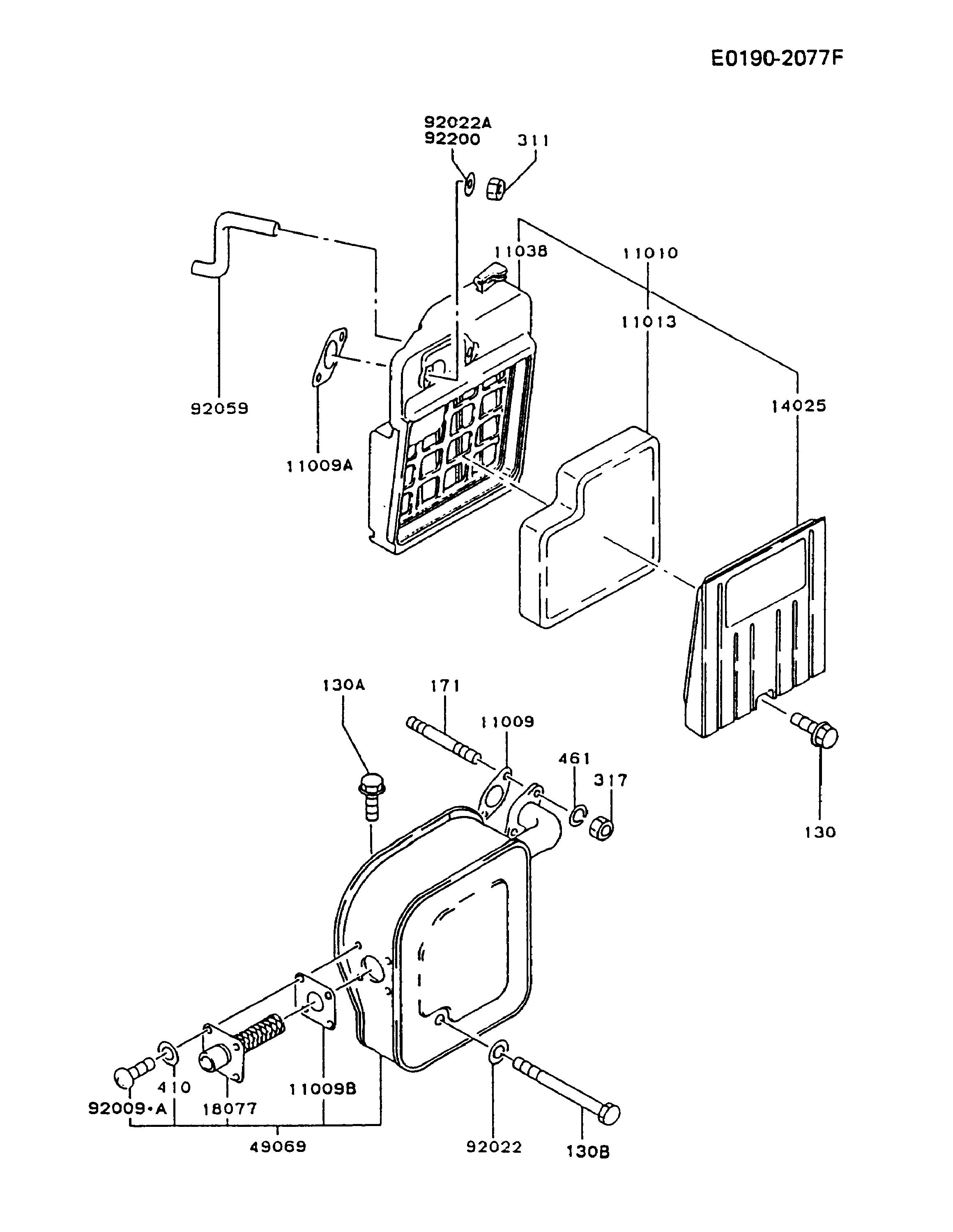Hier finden Sie alle Ersatzteile von Kawasaki Generatoren GAW30A-BS60 (GA2300A) aus der Zeichnung Luftfilter / Auspuff: