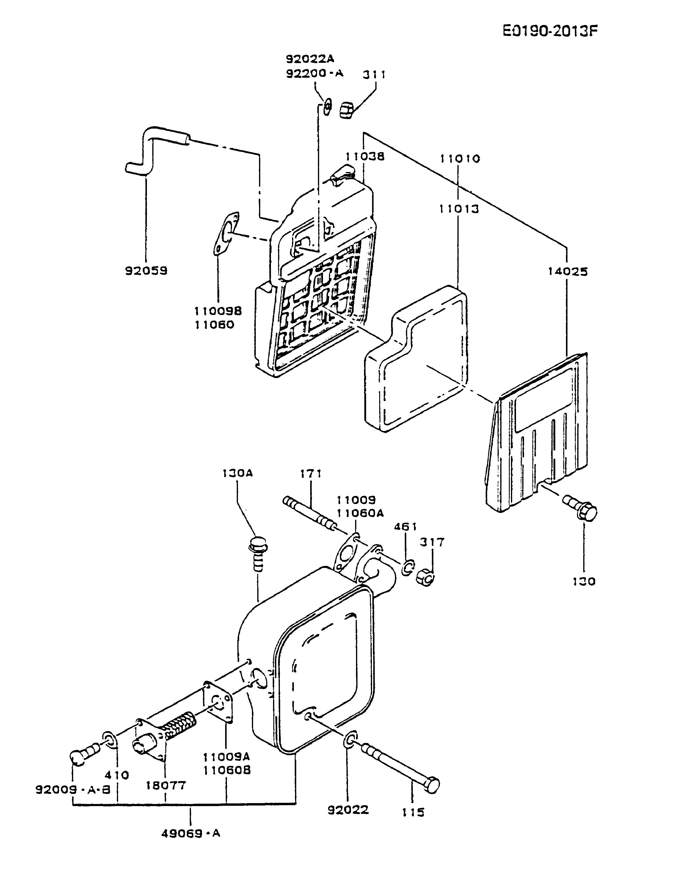 Hier finden Sie alle Ersatzteile von Kawasaki Generatoren GAH20A-CS00 (GA3200A-S) aus der Zeichnung Luftfilter / Auspuff: