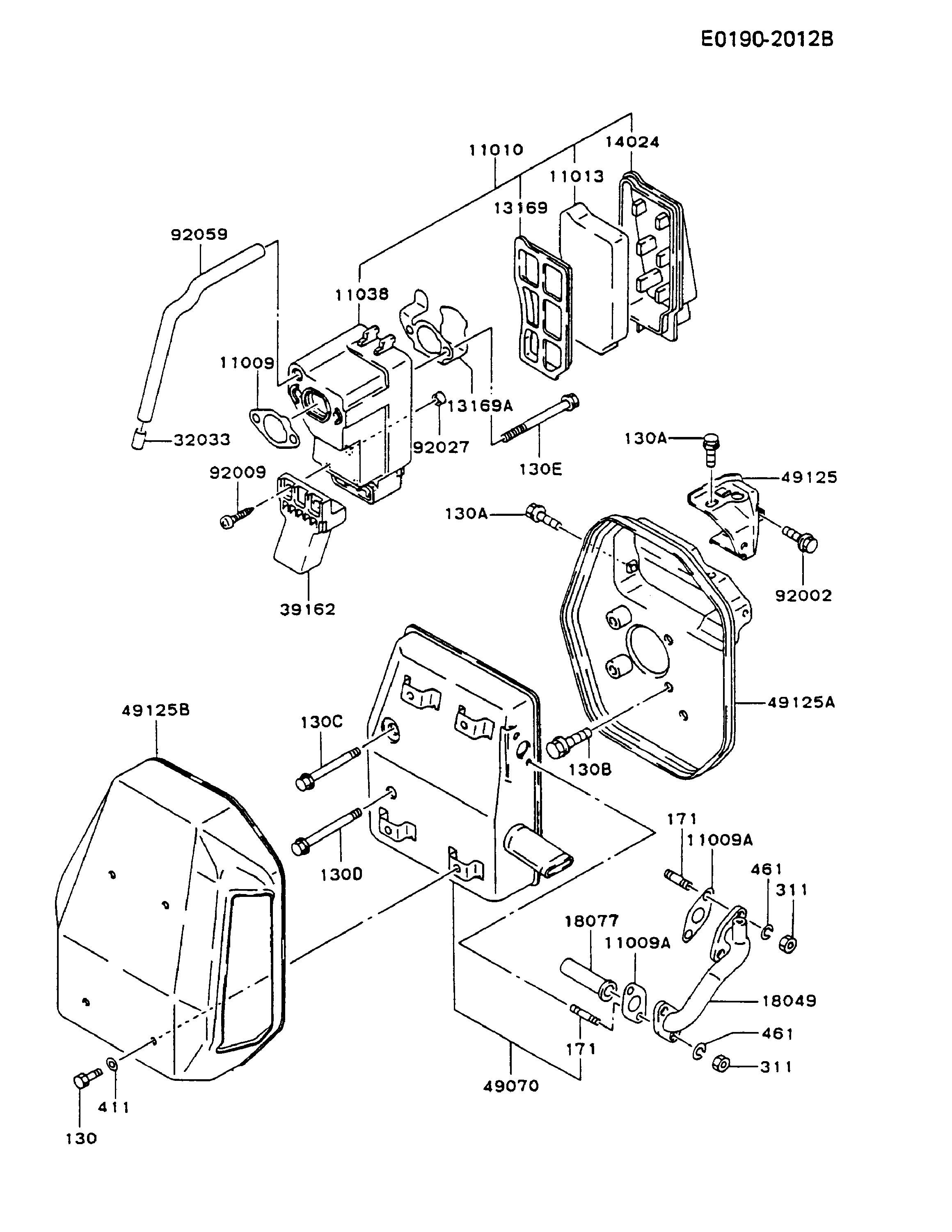 Hier finden Sie alle Ersatzteile von Kawasaki Generatoren GD550A-AV00 (GD550A) aus der Zeichnung Luftfilter / Auspuff: