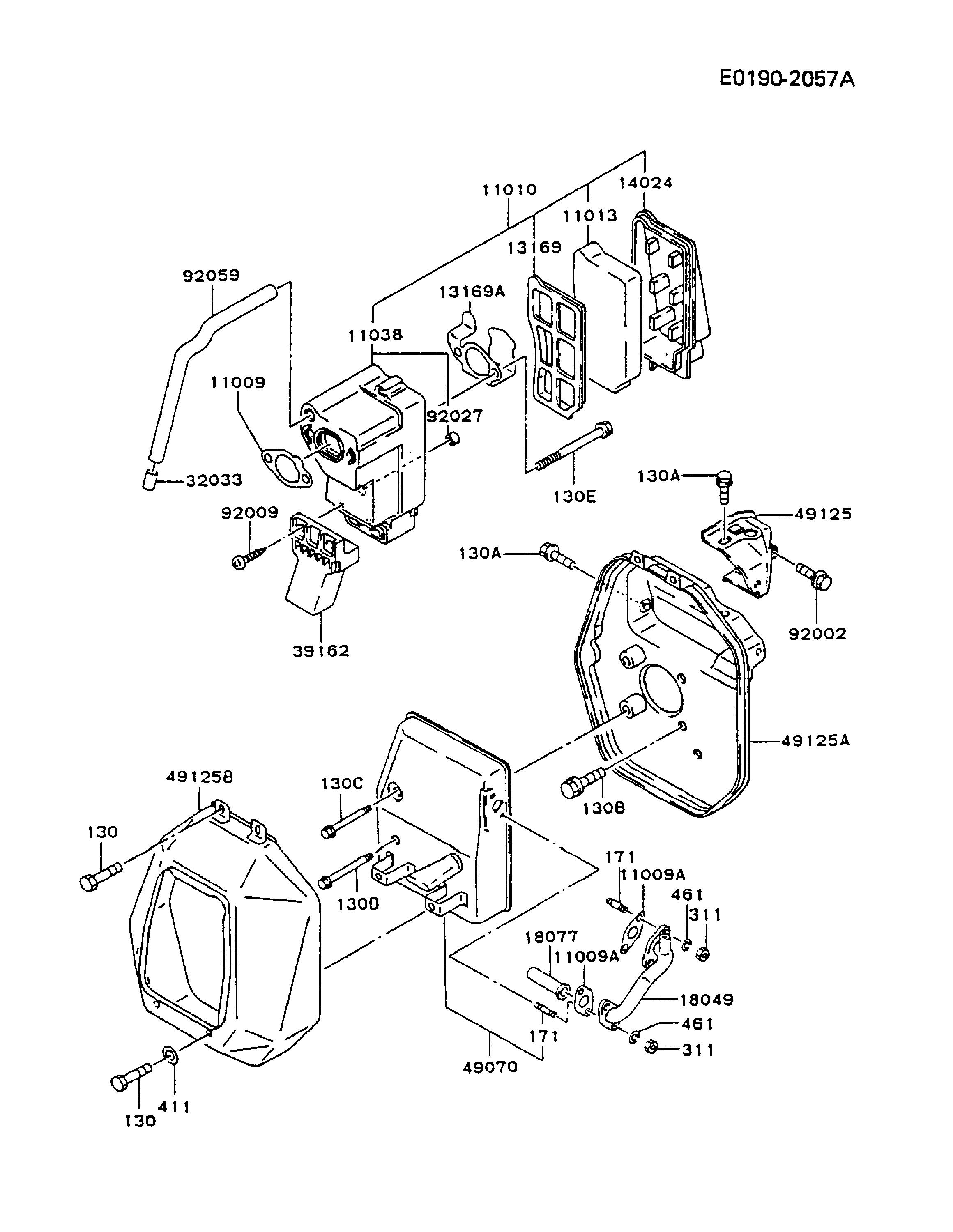 Hier finden Sie alle Ersatzteile von Kawasaki Generatoren GD700A-BS55 (GD700A) aus der Zeichnung Luftfilter / Auspuff: