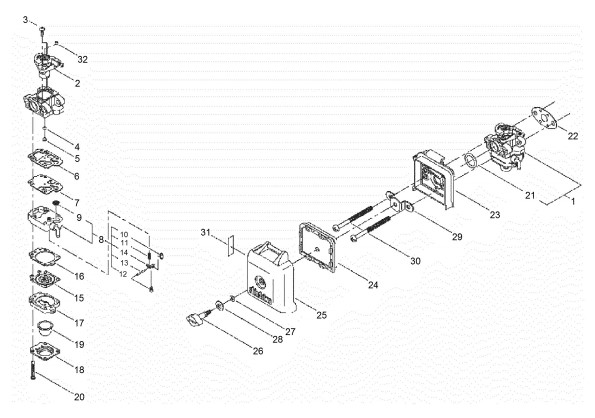 Zeichnung von shindaiwa Heckenscheren AH230S Luftfilter, Vergaser WYL-26C: