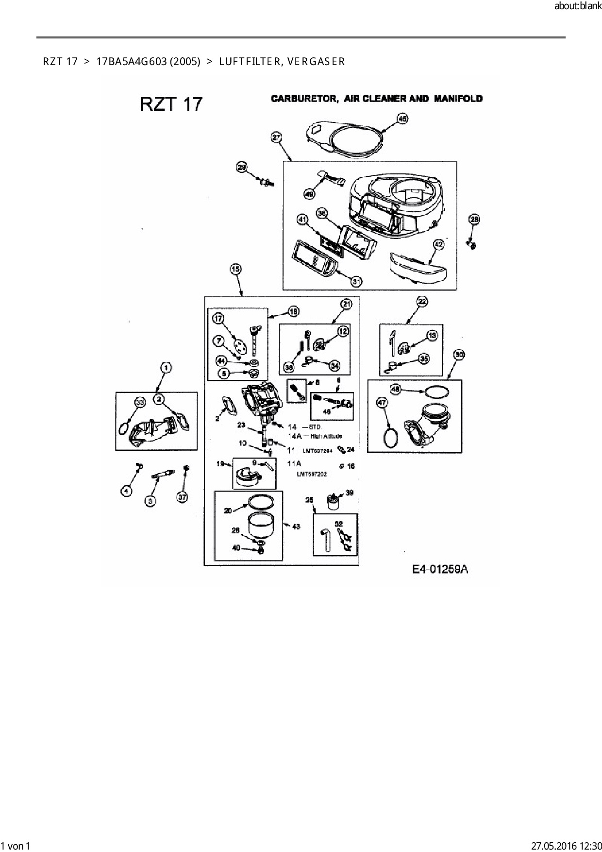 Download Ersatzteil-Zeichnung Cub Cadet RZT 17 Zeichnung Luftfilter, Vergaser (PDF-Format)