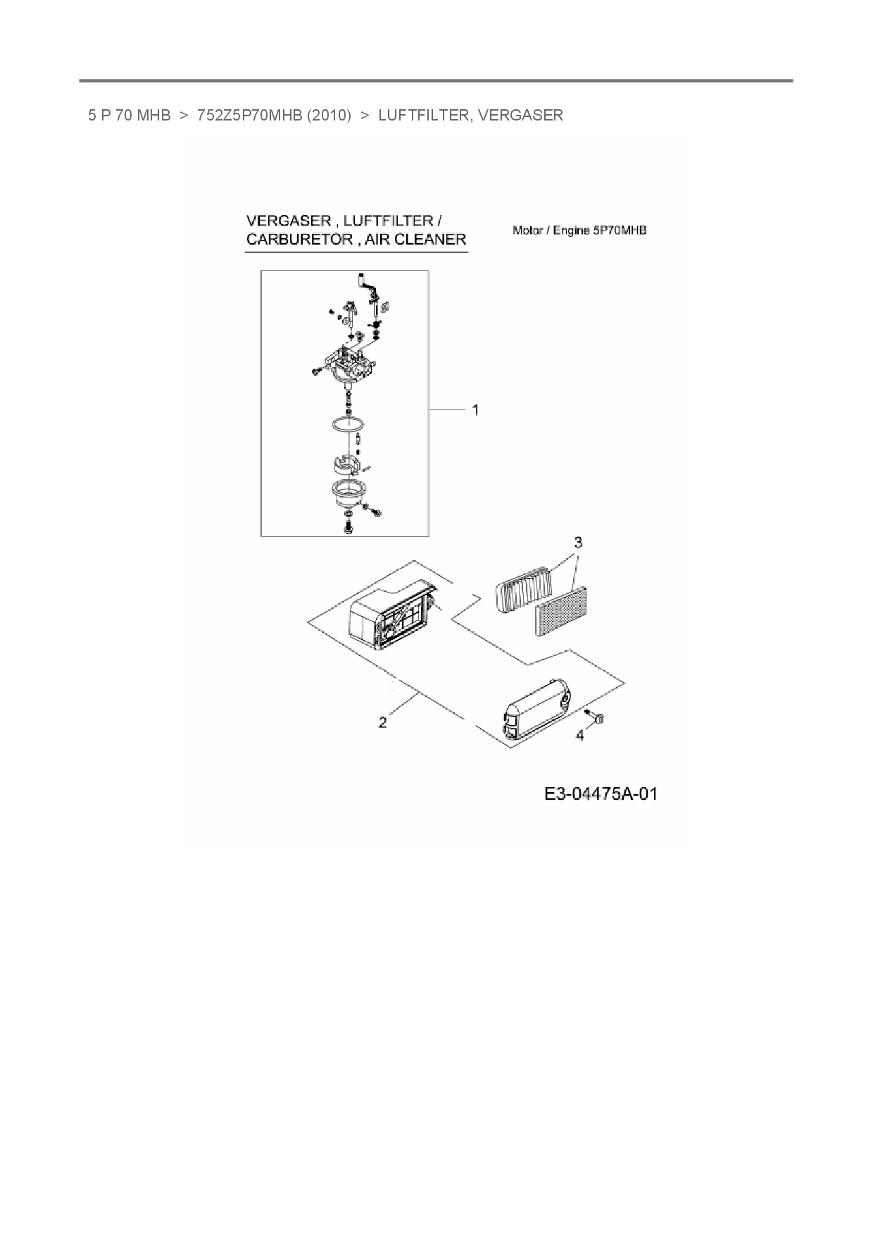 Download Ersatzteil-Zeichnung MTD-Motoren 5 P 70 MHB Zeichnung Luftfilter, Vergaser (PDF-Format)