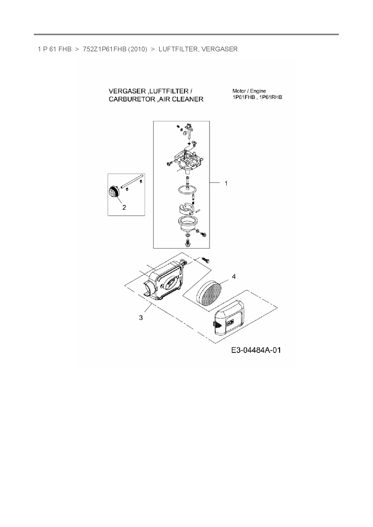 Ersatzteile für Vertikal MTD-Motoren 1 P 61 FHB aus der Zeichnung Luftfilter, Vergaser: