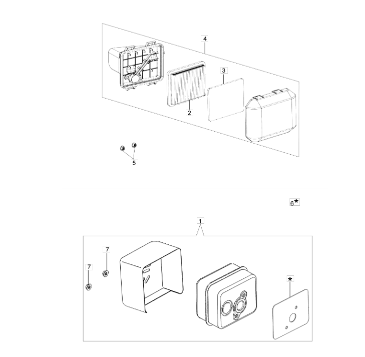 Hier finden Sie alle Ersatzteile für EFCO Raupentransporter TN 3400 K (K650) aus der Zeichnung Luftfilter und Auspuff:
